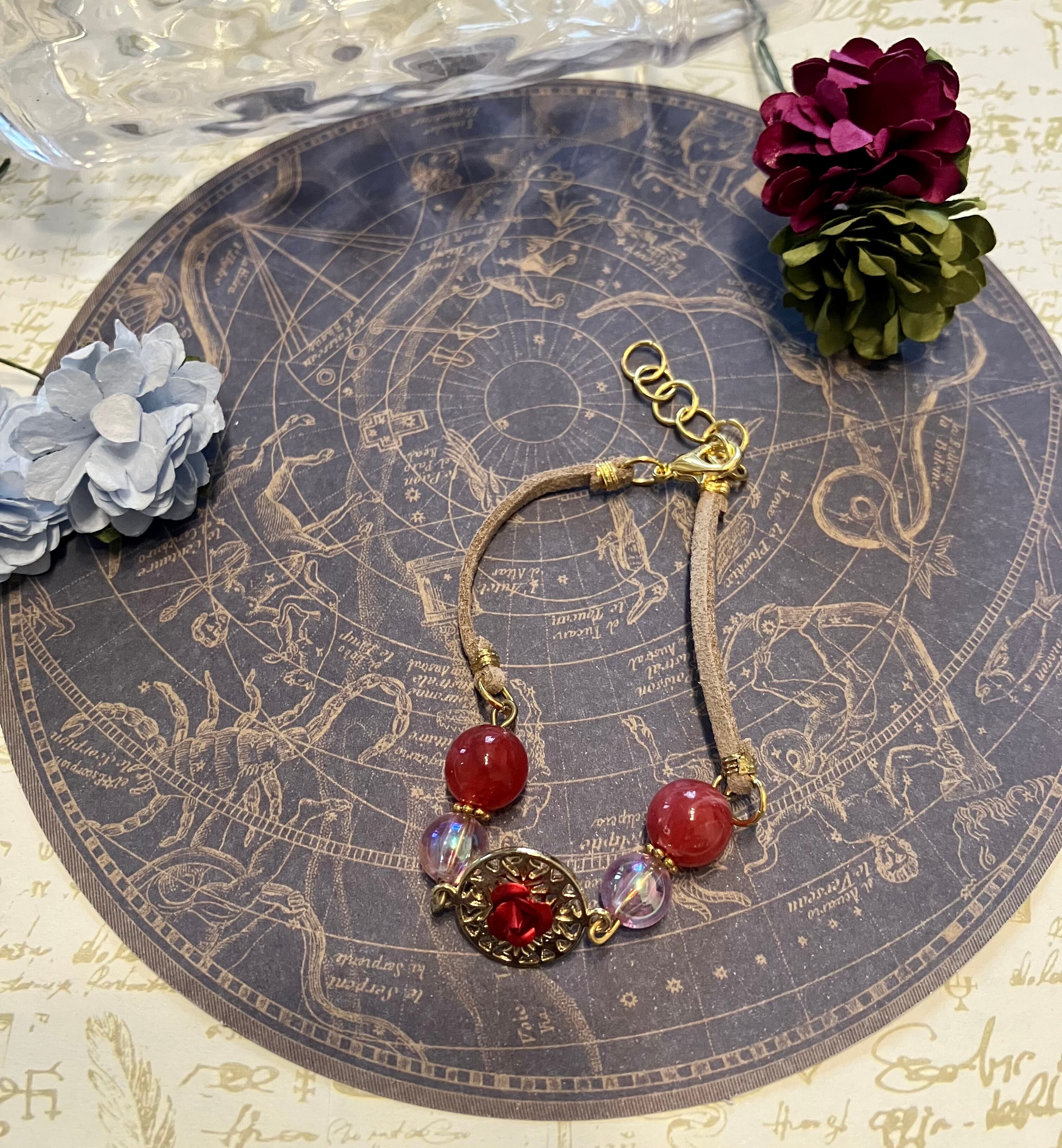 【B24】レッドピンク×ゴールドスエード調ブレスレット