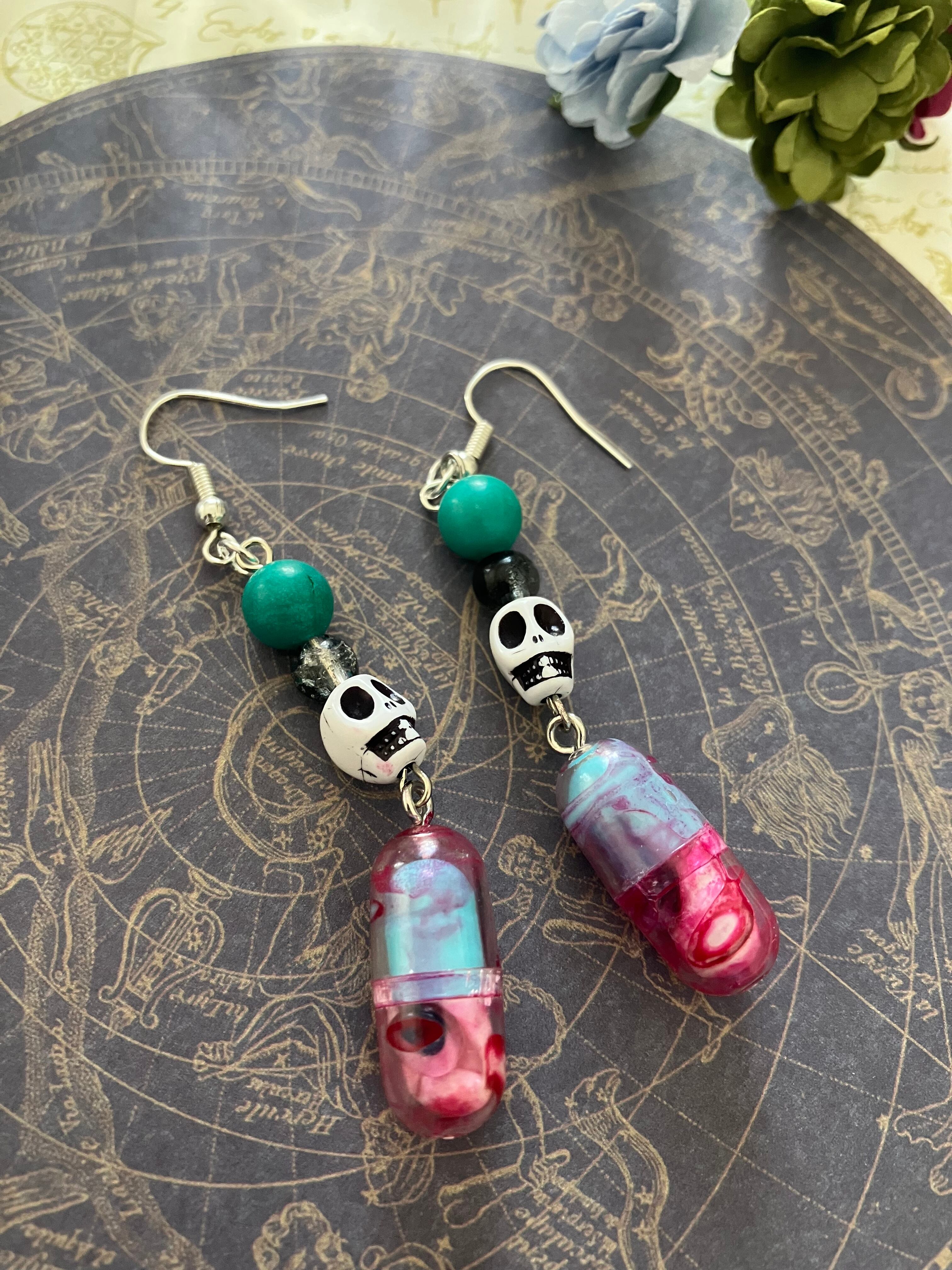 厨二病に刺さるような独特なデザインのピアスです。カプセル内にさりげなく目玉が入っているので個性的なものを好きな方へおススメです。
