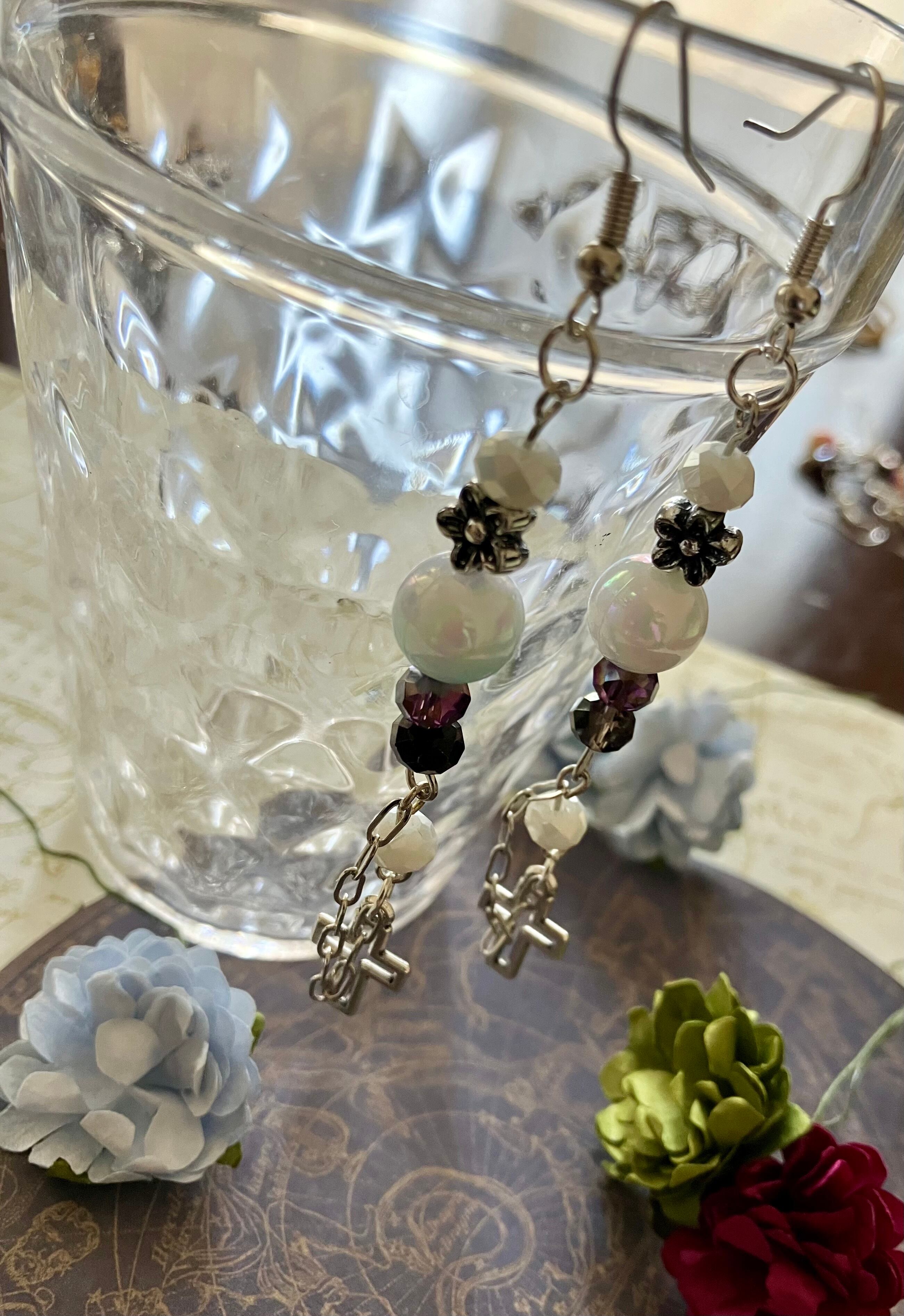 【p25】シルバークロス×フラワーピアス