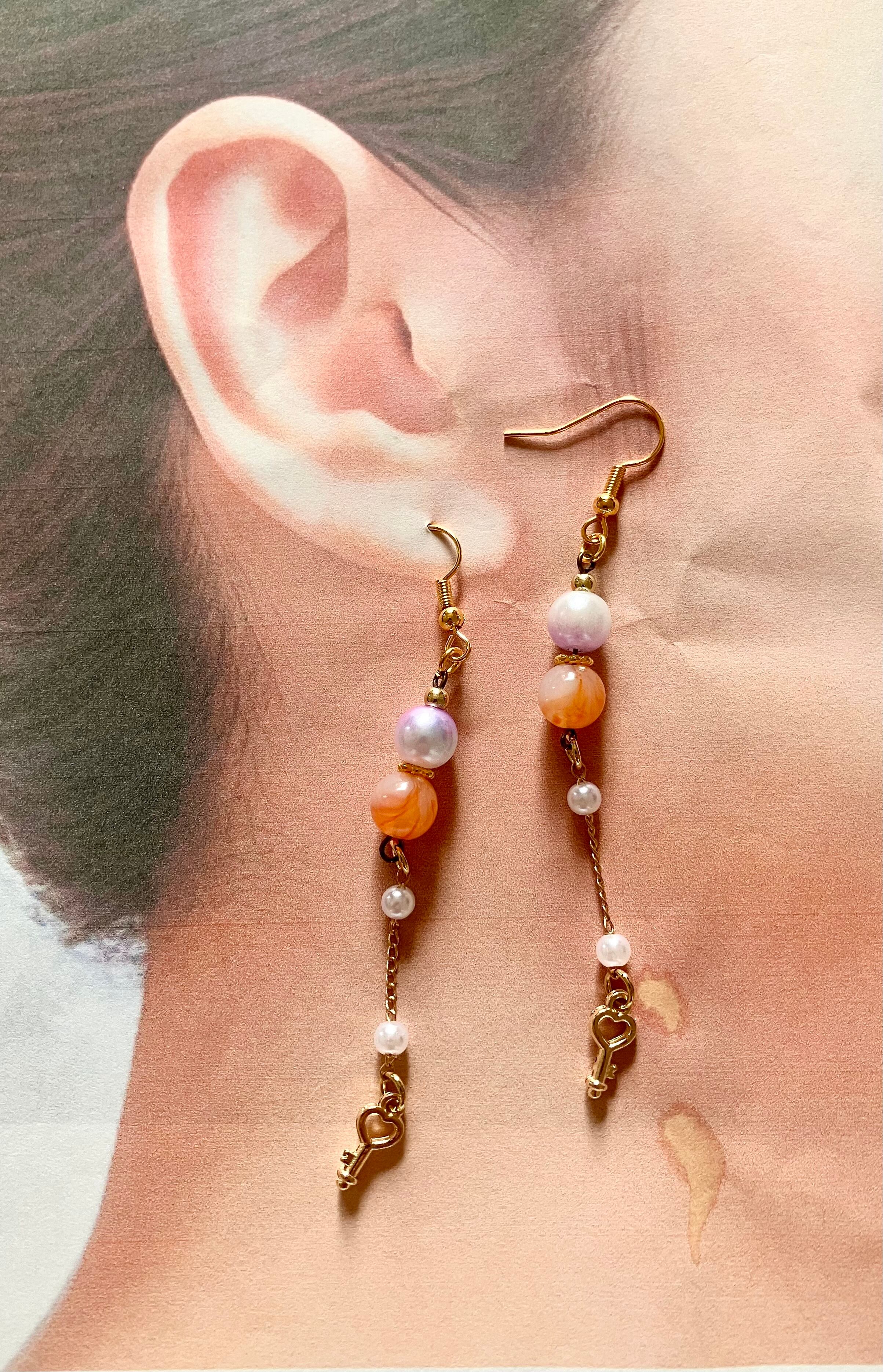 【p26】マーブルオレンジ×ハートキーピアス